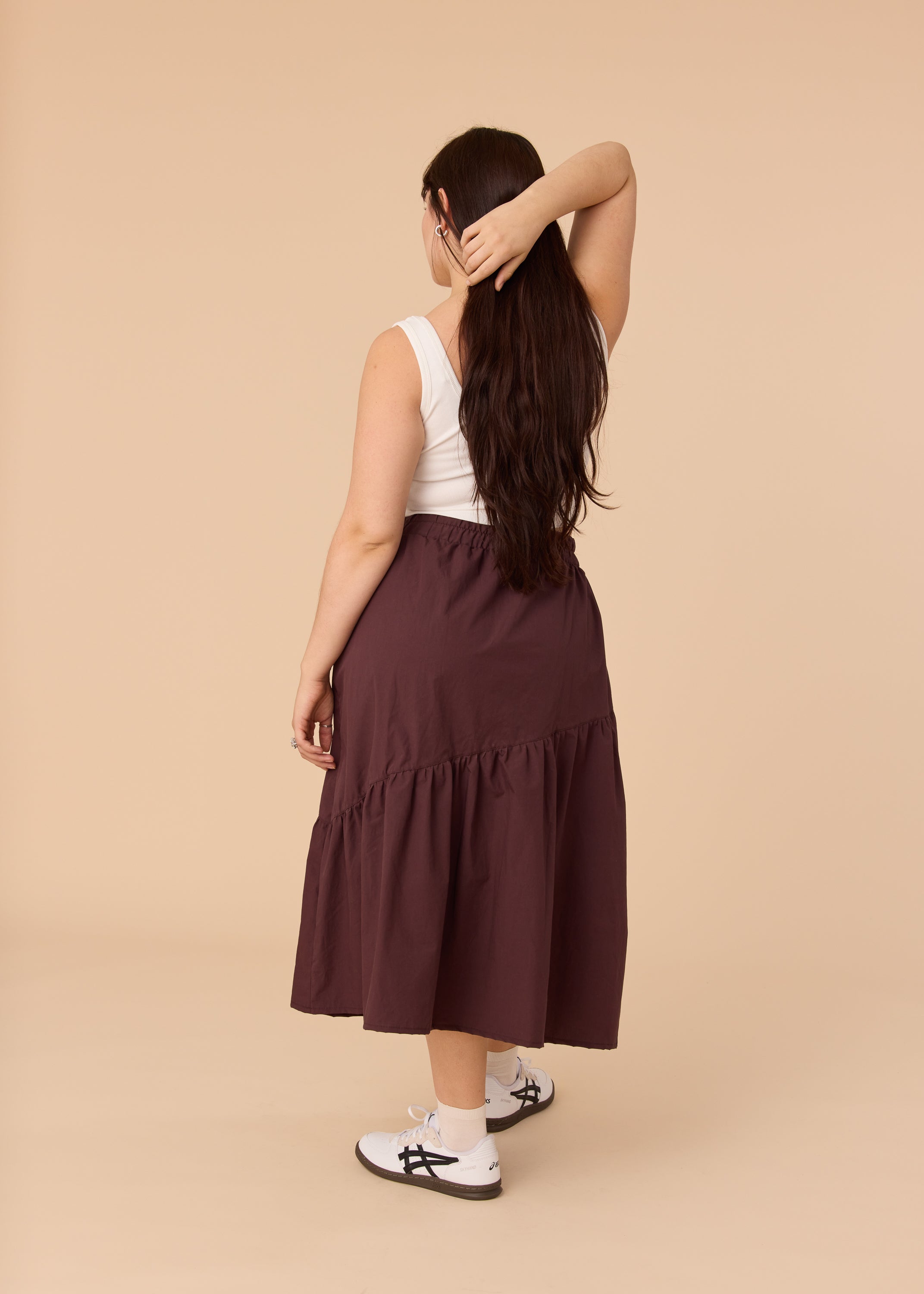 • A flowy, everyday skirt that accommodates weight fluctuation