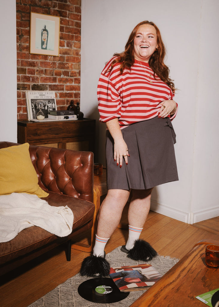 + Lindsay is wearing a size XL in Plaid