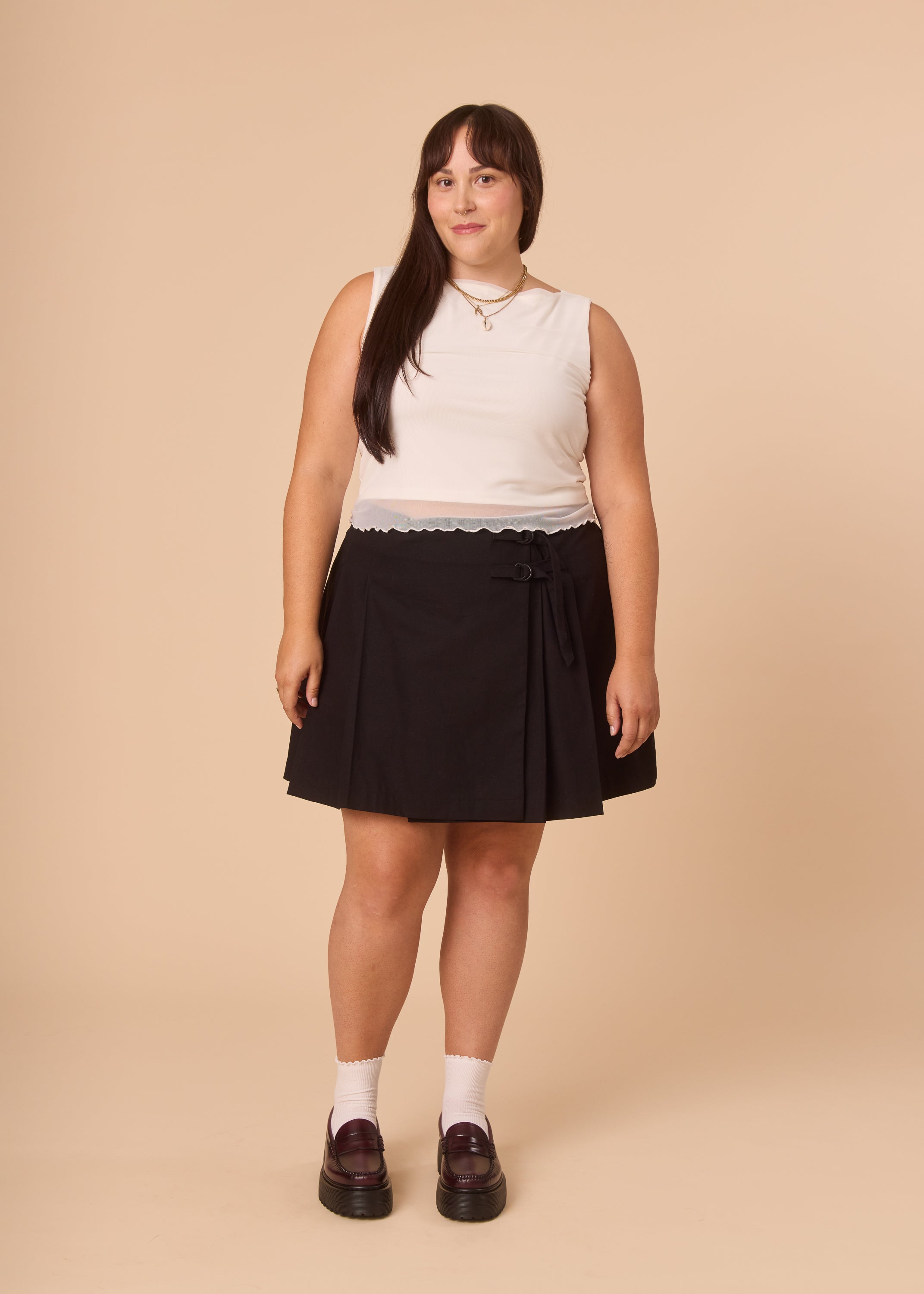 • Pleats in front, darts on back (for a better fit, and peace of mind on a windy day)